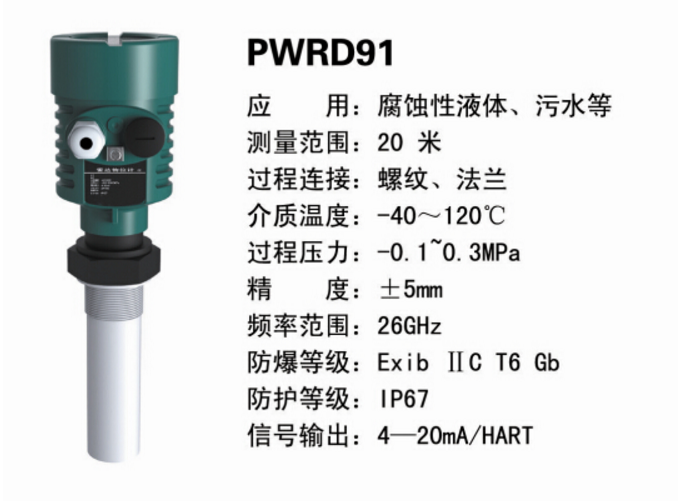 PWRRD91系列傳感器是一種26G高頻雷達式物位測量儀,測量距離可達80米。天線進一步優化,新的快速微處理器可以進行更高速率的信號分析和處理,使儀器能夠用于各種高腐蝕性液體的測量。
